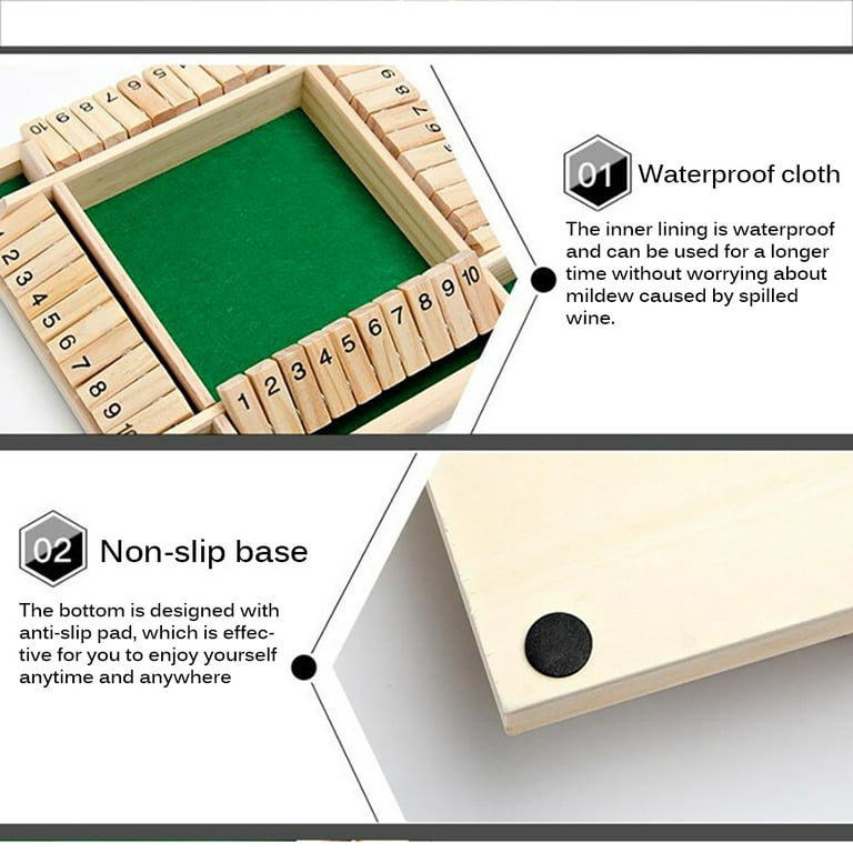 4 Way Player Shut The Box Dice Game Wooden Board Game Flip Lid Box Travel Size For Learning Numbers Kids Adults Classroom Home Pub 2 4 Players Walmart Com